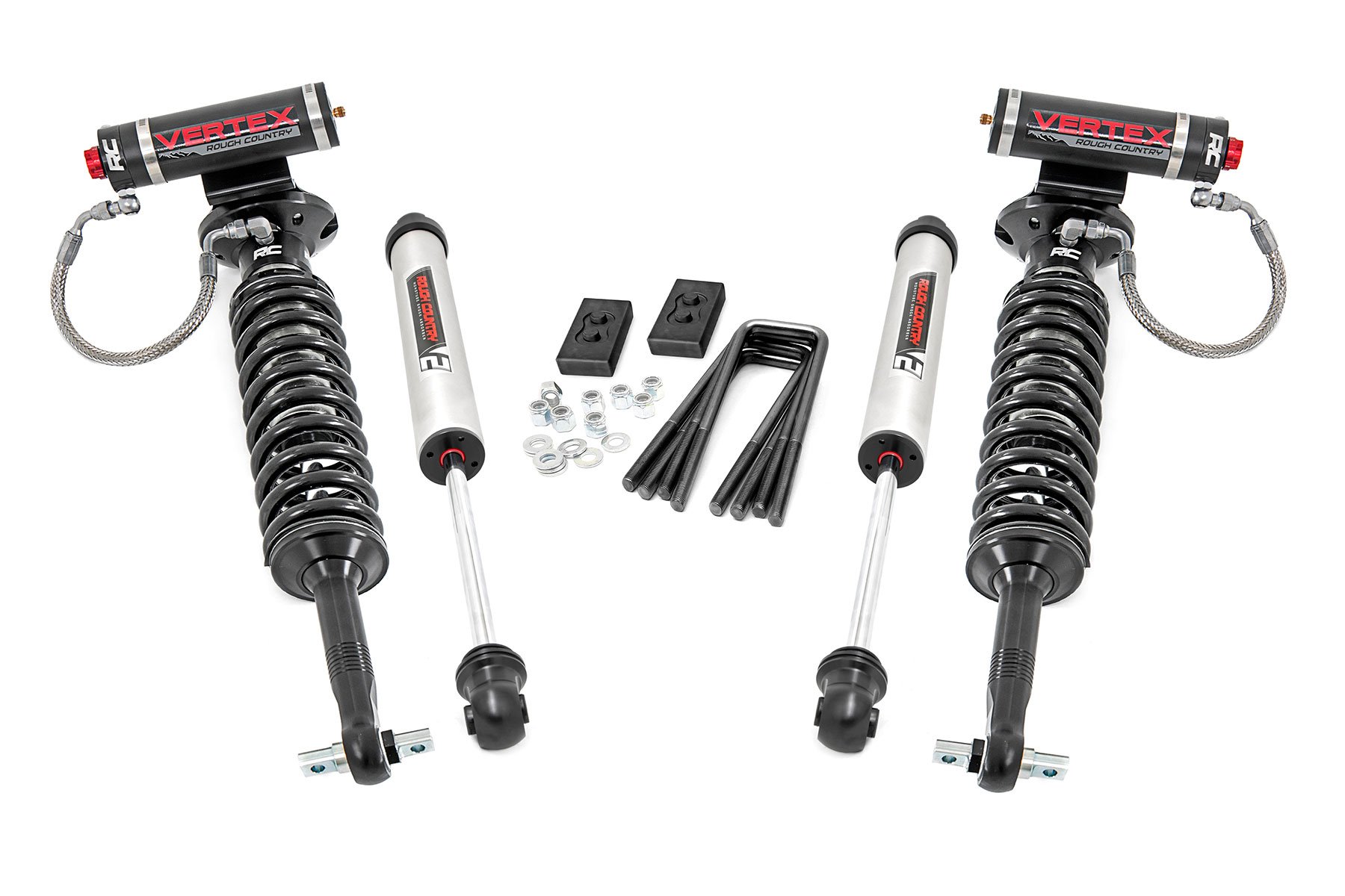 Level your F-150 with Rough Country’s new, head-turning Aluminum Leveling Spacer. This easy to install, innovative Aluminum Spacer combines great looks and strength, while providing 2 inches of lift. This new spacer features aircraft quality, T6061 Billet Aluminum offering enhanced durability against elements like rain and rust. Rough Country’s new spacer design has a driver and passenger side pattern that allows for clearance between the upper control arm and the strut. This simple design is easy to install with a 100% bolt-on installation process that can be done in mere hours. Best of all, this simple kit levels the front of your truck with the rear, giving your vehicle an overall more aggressive appearance and plenty of room for up to 33-inch tires.