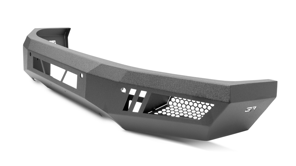 1/8″ THICK STEEL PLATE; ADD AGGRESSIVE STYLE WITHOUT WEIGHING DOWN THE VEHICLE; EASY BOLT-ON INSTALLATION; NON-WINCH CAPABLE; OE SENSOR COMPATIBLE; INCLUDES LICENSE PLATE BRACKET; LIGHT FITMENTS: 20″ DUAL ROW LED MIDDLE & 4 CUBE LEDS