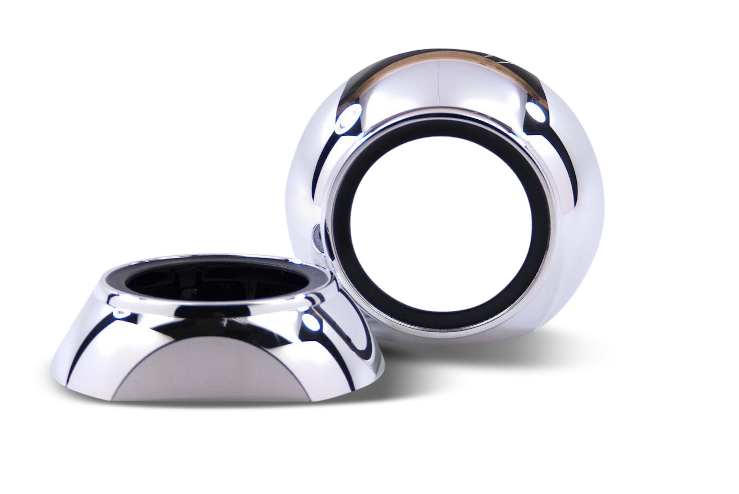 Iris: As smooth as they come – The Iris shroud is a clean way to cover up. This instant classic is inspired by the Volkswagen Tiguan. Iris is all about adding a clean and clutter-free style to your retrofit. They feature a textured black lip that surrounds the glass projector lens on the inside, surrounded by a perfectly smooth vacuum metalized chrome finish. In Comparison: Don’t make the mistake of thinking all shrouds are created equal. Even though less expensive alternatives may be available elsewhere: Morimoto shrouds are made from the highest quality plastic and have by far the most durable metalized chrome finishes. The cheapo’s out there are flimsy enough to deform from the heat just a 35W HID bulb, and their chrome finish easily flakes off. A or B: At our shop, we’re also meticulous with quality control. If a shroud has a minor factory defect; we sell it at a discount as a “B stock” unit – which is perfect for budget retrofits or when painting them is part of the plans. If you won’t settle for anything less than perfect and plan to leave them chrome; go for the “A Stock” Shrouds. Mounting: Centric Rings are not included by default, but are highly recommended to improve ease of installation on many projectors. The Centric Rings are simple reducers that clip into the shroud to reduce the inside diameter, making them more of a “press fit” onto the lens holder of the projector. JB Quik Weld is also recommended in order to prevent the shrouds from vibrating loose over time. LED Halos: Are a unique and effective way to further customize the look of your projector retrofit. The Profile Pivot (switchback) and Profile Pixel (RGB) systems are easy to mount on the front of your shrouds, are reliable, and of course awesome looking. To determine which size is best for you – check out the size-guide in the images above. Trimming: Please note that trimming shrouds is a common task when retrofitting. Whether required to clear part of the projector, or fit within the geometry of your headlight housing; it’s normal. Luckily, they’re made of plastic – making that easily possible. We recommend a Dremel hand tool with EZ Lock cutting wheels to make the job easy.