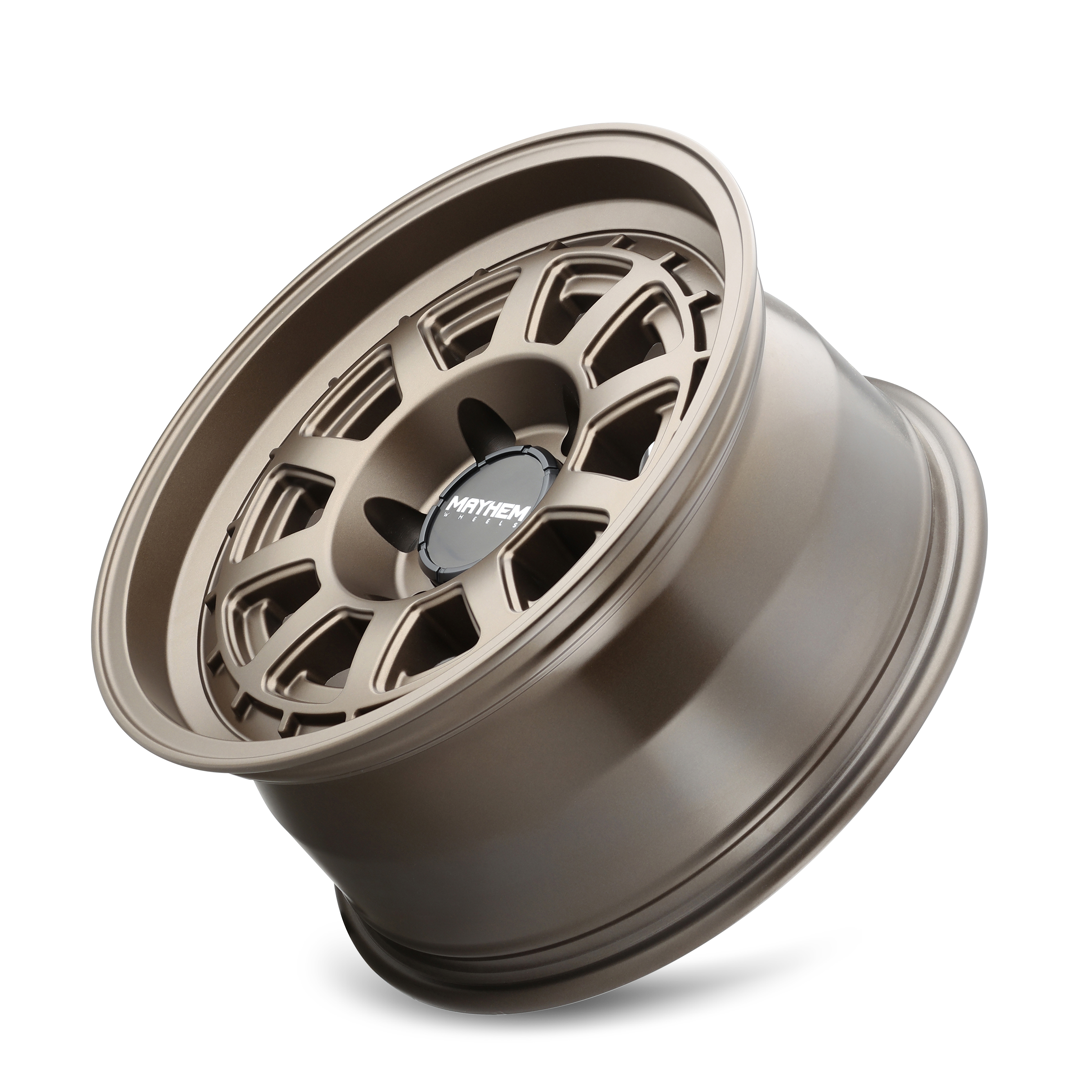 MAYHEM WHEELS DEVELOPMENT WAS IMMINENT AS WE ACCEPTED THE MISSION TO CREATE A BRAND THAT PROVIDES UNIQUE STYLING, PRECISION QUALITY AND SUBSTANTIAL ALLURE. OUR TACTICAL APPROACH TO CONSTRUCTING THE INDUSTRY’S MOST SUPERIOR PRODUCTS RESULTED IN A RADICALLY DURABLE WHEEL THAT TOUTS THE HIGHEST LOAD RATINGS FOR REAL WORLD APPLICATIONS. TARGETED FOR TRUCKS, JEEP AND SUV FITMENTS, WE DEPLOY A WIDE VARIETY OF SIZES AND FITMENTS WHICH SUPPLY A CUSTOM LOOK THAT’S UNMISTAKABLE. LIBERATE YOUR VEHICLE WITH A SET OF MAYHEM WHEELS.