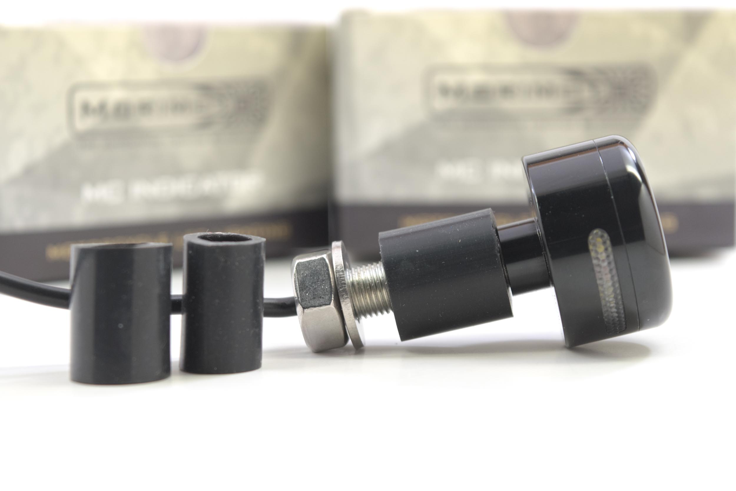 When Riding: Your ability to see and be seen are extremely important… .and as a bunch of motorheads ourselves, there are two things that can ruin the two wheel experience; 1) other idiots on the road, 2) other idiots on the road, and 3) boring stock parts. The new Endicators from Morimoto help solve both of these problems! Mr. Clean: There’s nothing worse than stock signals sticking out like a sore thumb on your custom motorcycle. Here, less is definitely more since the Endicators keep you street legal with less clutter. Nailed it! Industry First: Bright white LED daytime running light that illuminates from both the front and back and end of the unit to provide visibility to others while you ride along. Hit the turn signal, and the white daytime running light turns off and the equally bright amber LED signal flashes. The white DRL will automatically return once the signal stops. Now thats trick! All in the Optics: Outfitted with completely custom optics that help to distribute the light evenly and in all the right directions, there is more tech going on here than what simply meets the eye from the outside. Behind those optics, CREE XBD LED chips are driven by proprietary voltage regulators, giving these a virtually infinite lifespan. Compatible: With traditional handlebars, clip-ons, ape hangers, drag bars, etc. really any style you’re rocking on your bike. They include three different rubber compression fittings allowing them to fit tightly inside of handlebars that range from 18-20mm in inside diameter. Tighten the nut with an open-ended wrench at the base just enough to expand the rubber fitting. Route the wiring over to the triple tree and out the handlebar. Press the bar end in place. Done. Smaller handlebars? Surely you can make them work–we have confidence in you! Bearded: OK so they don’t have a beard, nor can we guarantee they’ll make yours grow in any thicker, but they sure are beefy! Their body is CNC machined from a single block of 6061 billet aluminum, then anodized with a beautiful black finish. Functional. Looks good. Built to Last. Won’t break the bank. We like it! Hyper Flash: If you’re riding a BMW or other CANBUS-equipped bike and plan to replace the original incandescent signals all together with these: You may need to add some resistors into the circuit to avoid hyper flashing. If you’re just adding these in conjunction with the OEM turn signals, they should draw so little power that the bike’s computer won’t be of the wiser.