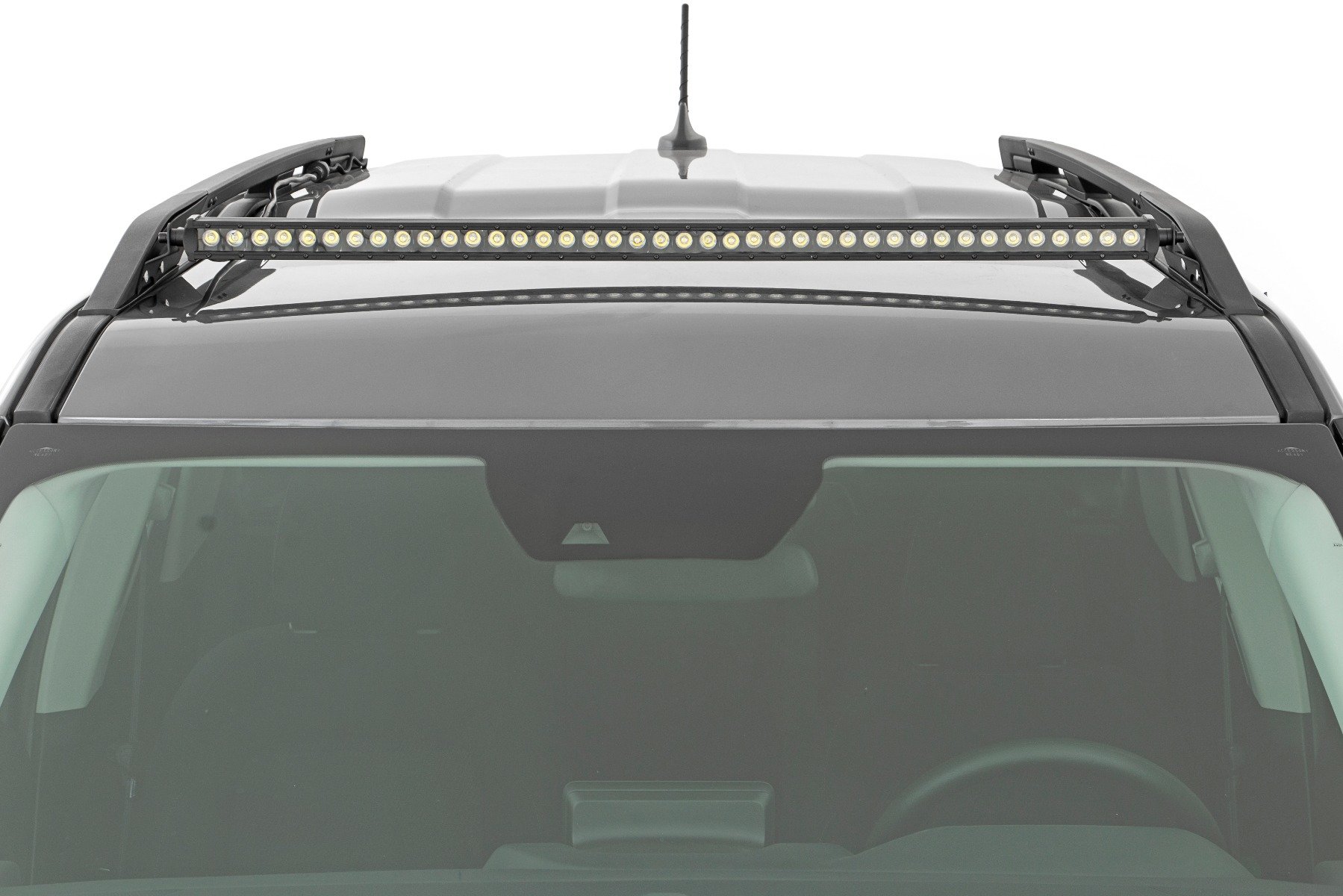 COMMAND THE DARK with Rough Country’s 40-inch LED Upper Windshield Light Bar Kit. This easy-to-install kit is the ultimate solution for adding an aggressive looking, forward-facing lighting system to your Bronco Sport! With its modern, stylistic design and superior strength, this upper windshield mount holds your 40-inch Light Bar between the roof rack of your Bronco Sport spanning the width of the roof and giving a killer look.