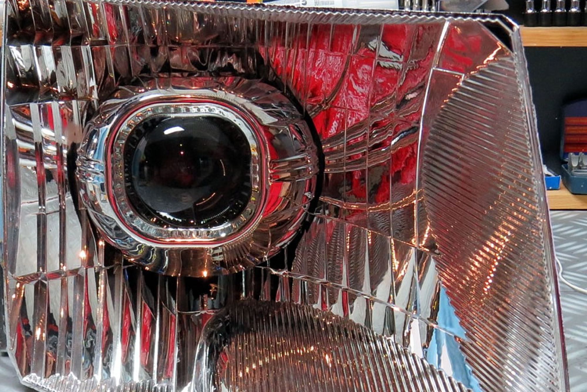 Ocular Square: The Ocular Square comes in smooth, with its basic lines it’s easy on the eyes and adds to the appeal on any X Lens retrofit with it’s good coverage. Clean design incorporates smooth chrome and a dimpled finish into a great looking bezel that’s extremely versatile due to its wide coverage and minimal depth. It’s just enough without getting in the way. NOTE: The Square Ocular fits only the Morimoto Mini D2S 5.0 with the “Square Lens” option. In Comparison: Don’t make the mistake of thinking all shrouds are created equal. Even though less expensive alternatives may be available elsewhere: our shrouds are made from the highest quality plastic and have by far the most durable metalized chrome finishes. The cheapo’s out there are flimsy enough to deform from the heat just a 35W HID bulb, and their chrome finish easily flakes off. Mounting: JB Quik Weld is recommended in order to prevent the shrouds from vibrating loose over time. Trimming: Please note that trimming shrouds is a common task when retrofitting. Whether required to clear part of the projector, or fit within the geometry of your headlight housing; it’s normal. Luckily, they’re made of plastic – making that easily possible. We recommend a Dremel hand tool with an EZ-Lock cutting wheel to make the job easy.