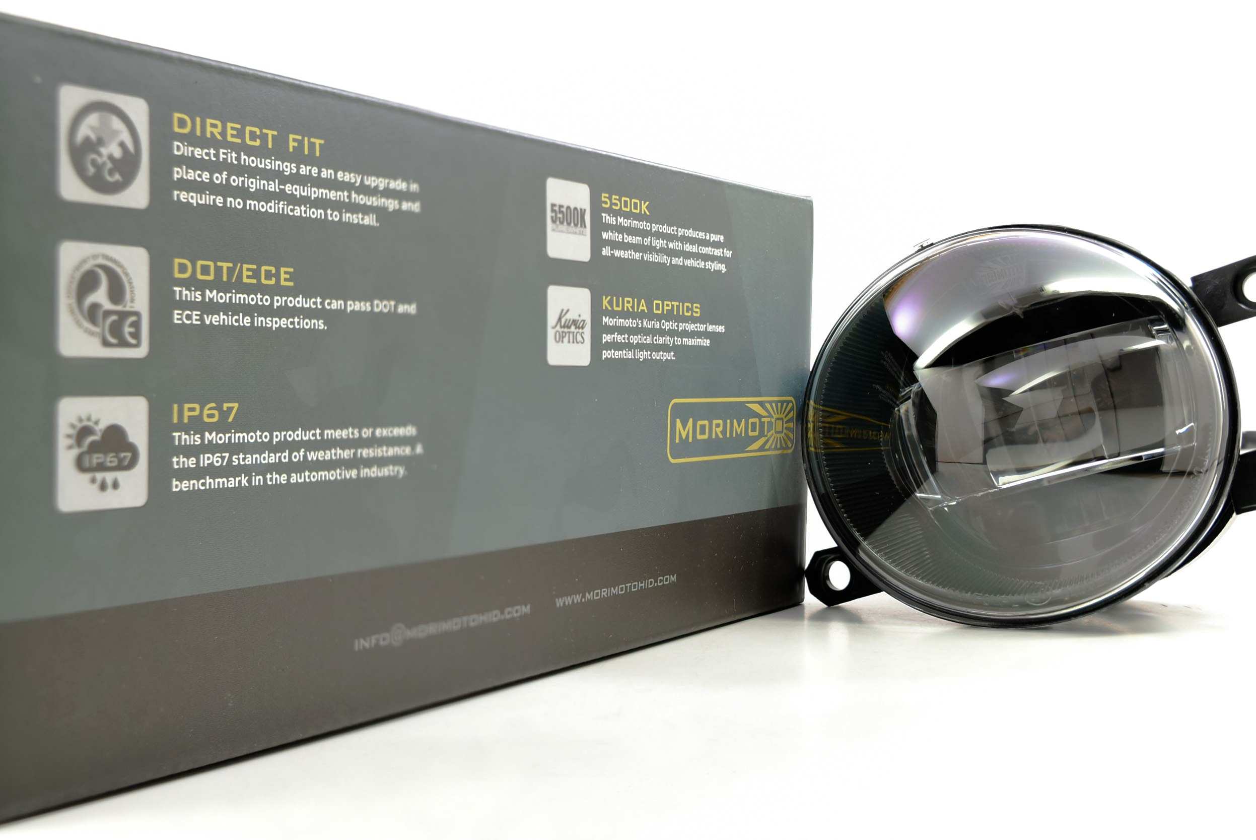No Substitutes: If you don’t have LED powered fog lights, then you’re just behind the times! Thankfully the new Morimoto XB LED projector fog lights: Look great. Are well-built. Perform like champs. Have a virtually infinite life span. An unbeatable warranty, And best of all you won’t need to sell your soul to afford them! Many of the guys here at the shop use them on their own vehicles, and they’re easily one of our most popular product lines. Compatible: With many modern applications from Toyota, these complete fog light housings will swap in place of the original halogen units that they’re designed to replace, using all of the stock mounting locations. Their aim can be perfectly dialed in with the integrated height adjusters. Check the compatibility section below for a list of known applications. Note about Fitment: For most Toyota / Lexus installs, these are a 100% direct fit in place of the stock fog lights. For certain fitments such as the 2014-2018 Toyota 4Runner, the mounting points are very close but not 100% identical to stock, so some minor trimming or adjustment of the plastic bracket on the Morimoto XB fog lights may be required. Plug n Play: Wiring is easy too! The Toyota LED fog lights are designed to work without any special wiring. They will plug into the factory connectors for the stock fog lights and each assembly includes all necessary connectors, rubber seals, and pigtails for a plug n play install. Powered: By three Philips Luxeon-T 5500K LED’s that produce around 1200 raw lumens per side. The projector based optics concentrate a total of 2400 lumens of pure white light into a beam that’s super wide and perfectly distributed for use as a fog light. Make no mistake, these will produce a much different [better] result than slapping some LED replacement bulbs into your stock housings. The XB fogs meet & exceed all SAE, DOT, and ECE regulations. Well-Built: Their durable polycarbonate lens will resist the test of time, keeping the housings looking new for many years to come. The powder-coated cast aluminum housing is light-weight and much stronger than comparable plastic alternatives. Doubling as the heat-sink for the LED’s, the housings completely protect the internals from moisture and road debris. We’ve sold many thousands of these Toyota fog lights and to date, have only seen one or two develop a problem… no joke! target=”new”>HERE! Overview V