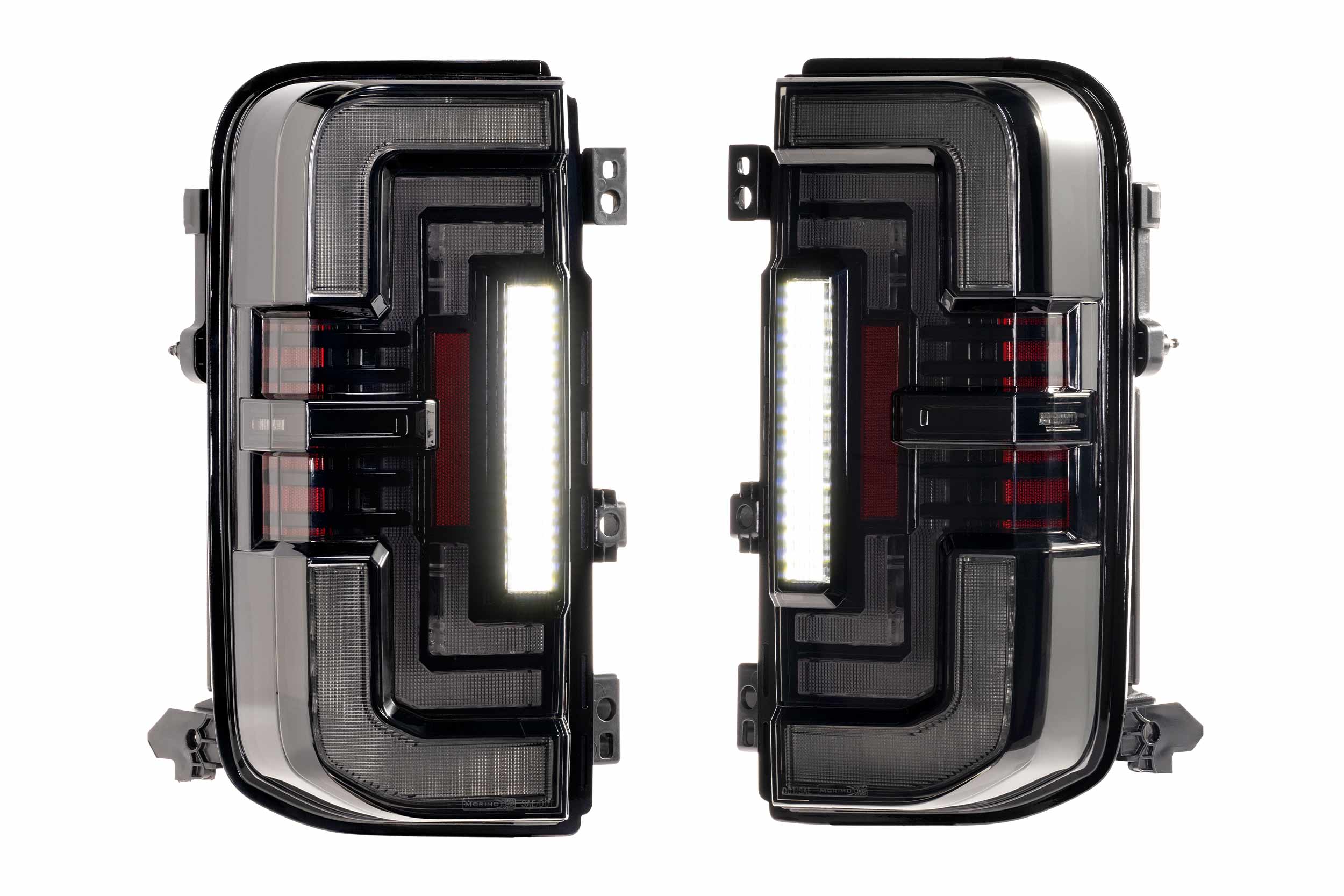 Ford Bronco: While every biz in the aftermarket has a catalog full of products for the new Bronco, somehow no brand has yet to deliver a worthy set of tail lights for this truck… until now. The Morimoto XB LED tail lights are the category killer that every Bronco owner has been waiting for. The low profile design. The advanced, high output optics. The fact that they work with every version of the truck… the XB Low-Pro Tail lights for the Ford Bronco are the full package! Reverse Lights: Are often over-looked, but not with the Morimoto XB tail lights for the Bronco. While they come standard with powerful LED reverse lights, just wait, there’s more! Morimoto’s BLBB system allows you to plug n play with the optional LED Backup Boost Bar which mounts to the top of your license plate frame and provides an extra 2,700 lumens of controlled light output in reverse. Yeah, Morimoto customers like to see where they’re going in reverse too! Style: A truly OEM+ design with a significantly lower profile, these look right at-home on the rear end of the Bronco. Dual rows of 3D Optics are illuminated from the rear with integrated TIR optics and serve as the brake light and turn signal. The parking light optic around the outer edge of the lights is equally impressive in the intensity department day or night. Pair that with the surrounding muscular trim, optional smoked or red outer lens, and we’ve easily got what is the best-looking set of low profile tail lights on the road for the Bronco. Style and Safety: All Morimoto tail lights are designed to comply with all DOT, SAE regulations for rear-facing lamps. We pride ourselves on offering stylish, high-performance and safe products for serious enthusiasts, which is why all new Morimoto products are verified by trusted third party labs for compliance and are backed with an industry-leading five-year warranty.