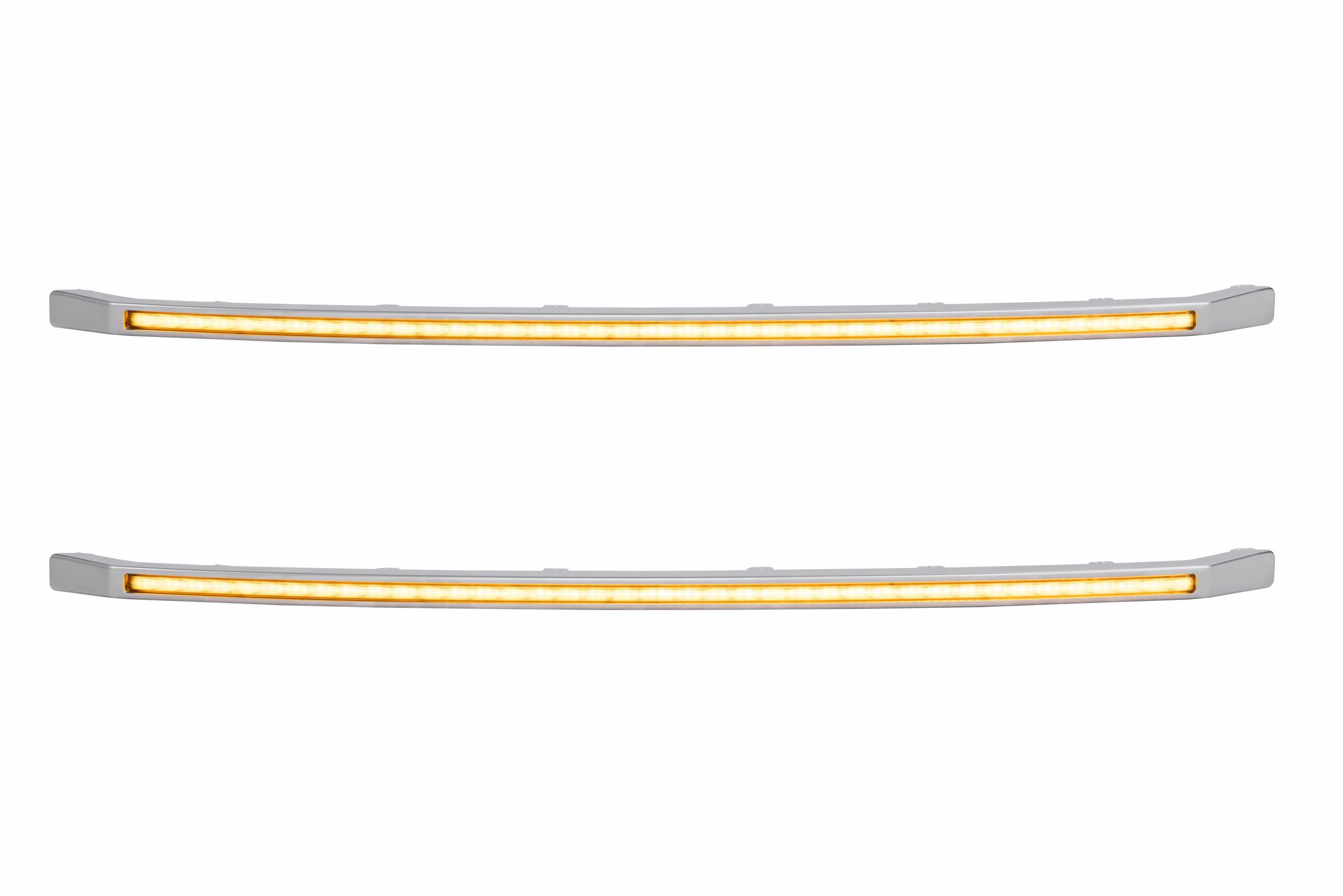 Can you see me now? With full LED headlights, tail tights, and off-road lights, You have no problem seeing at night, but that’s not what this is all about. If you have a 20-22 Ford Super Duty with the OEM Platinum grille, you can now finish off your front end with the XBG LED Daytime Running Light insert kit! Each kit includes new upper and lower trim pieces, the LED optics, and a plug n play harness, all designed to upgrade the stock grille with ease!Daytime Running Lights: Using the same automotive grade optics and Osram LEDs that come standard in Morimotos XB LED headlights, the DRL Bars are insanely bright, easily visible even from afar in broad daylight! In fact, the daytime mode is so bright that the light bars will auto-dim in parking light, low beam, or high beam mode out of necessity in order to reduce glare at dusk or in the dark. These are available with either a white or amber daytime running light.No Comparison: Put side-by-side during the day with other existing options in the aftermarket or anything you could DIY at home, and the quality, consistency, and intensity out of the Morimoto optics would make the everything else look like a joke. If you are serious about the looks and performance of the parts you put on your truck, the XBG upgrade kit is the new no brainer.Compatible: With the OEM Platinum grille on 20-22 Super Duties, the XBG LED DRL grilles are extremely easy to install. They snap right into the mounting points for the existing upper and lower trim pieces, and hold the DRL optics within. While the color/intensity is a perfect match for the Morimoto XB headlights, they’ll also look great alongside a set of OEM LED or any other aftermarket headlights too.Plug n Play: The XBG DRL bars have two intensities that automatically illuminate day and night based off the signals from the original headlight wiring that they’re designed to connect with. The default setup intercepts the headlight signals from Super Duties with the standard halogen headlights. An adapter harness is also included for trucks that came with the original-equipment LED headlights. No modifications required.