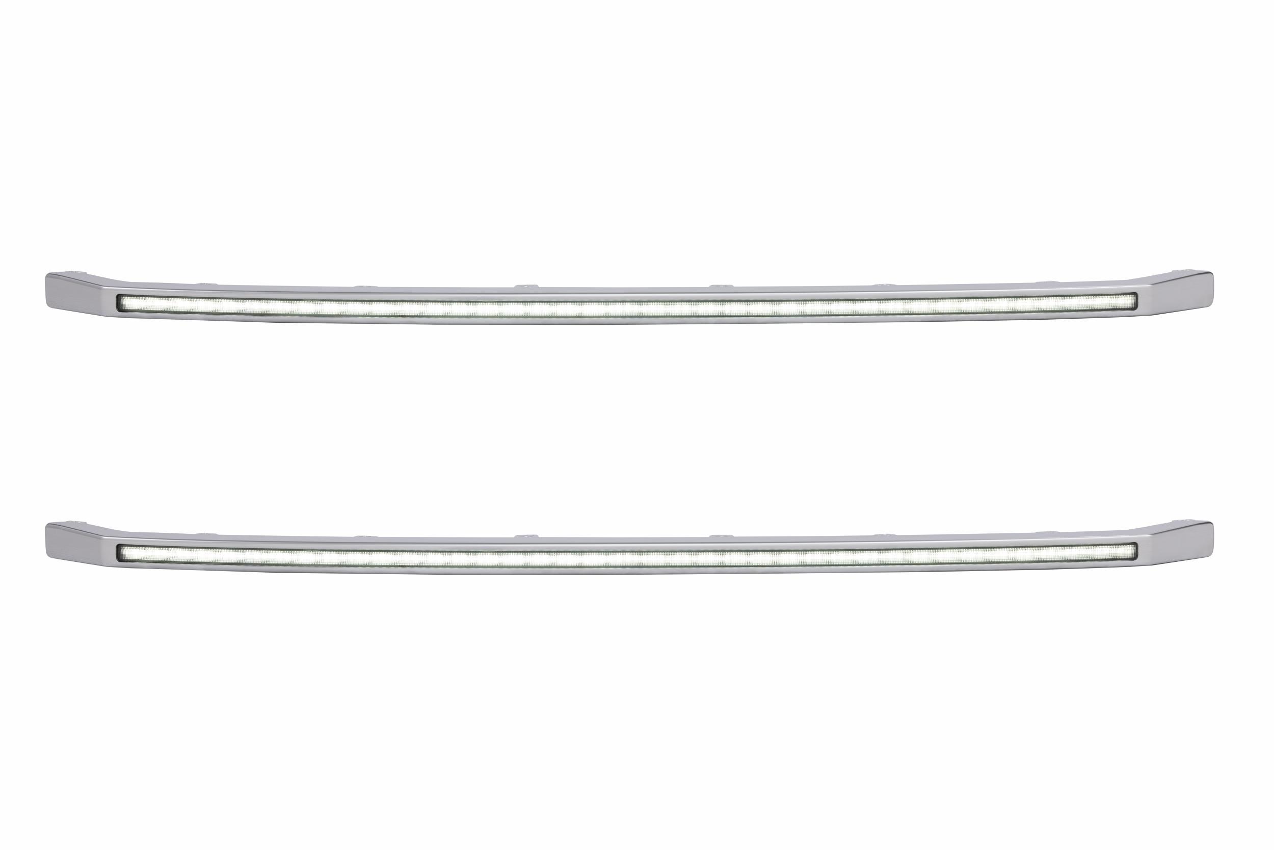 Can you see me now? With full LED headlights, tail tights, and off-road lights, You have no problem seeing at night, but that’s not what this is all about. If you have a 20-22 Ford Super Duty with the OEM Platinum grille, you can now finish off your front end with the XBG LED Daytime Running Light insert kit! Each kit includes new upper and lower trim pieces, the LED optics, and a plug n play harness, all designed to upgrade the stock grille with ease!Daytime Running Lights: Using the same automotive grade optics and Osram LEDs that come standard in Morimotos XB LED headlights, the DRL Bars are insanely bright, easily visible even from afar in broad daylight! In fact, the daytime mode is so bright that the light bars will auto-dim in parking light, low beam, or high beam mode out of necessity in order to reduce glare at dusk or in the dark. These are available with either a white or amber daytime running light.No Comparison: Put side-by-side during the day with other existing options in the aftermarket or anything you could DIY at home, and the quality, consistency, and intensity out of the Morimoto optics would make the everything else look like a joke. If you are serious about the looks and performance of the parts you put on your truck, the XBG upgrade kit is the new no brainer.Compatible: With the OEM Platinum grille on 20-22 Super Duties, the XBG LED DRL grilles are extremely easy to install. They snap right into the mounting points for the existing upper and lower trim pieces, and hold the DRL optics within. While the color/intensity is a perfect match for the Morimoto XB headlights, they’ll also look great alongside a set of OEM LED or any other aftermarket headlights too.Plug n Play: The XBG DRL bars have two intensities that automatically illuminate day and night based off the signals from the original headlight wiring that they’re designed to connect with. The default setup intercepts the headlight signals from Super Duties with the standard halogen headlights. An adapter harness is also included for trucks that came with the original-equipment LED headlights. No modifications required.