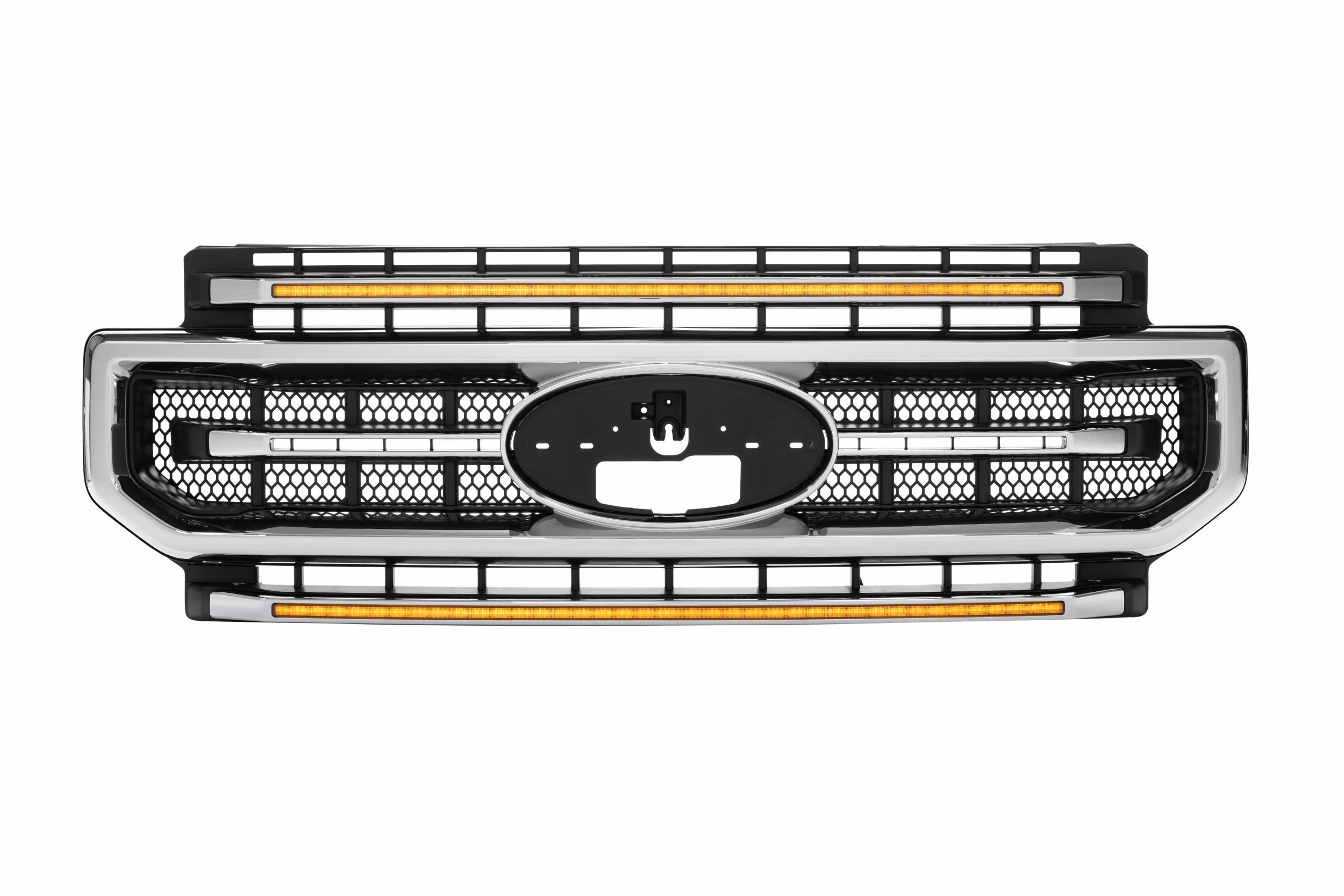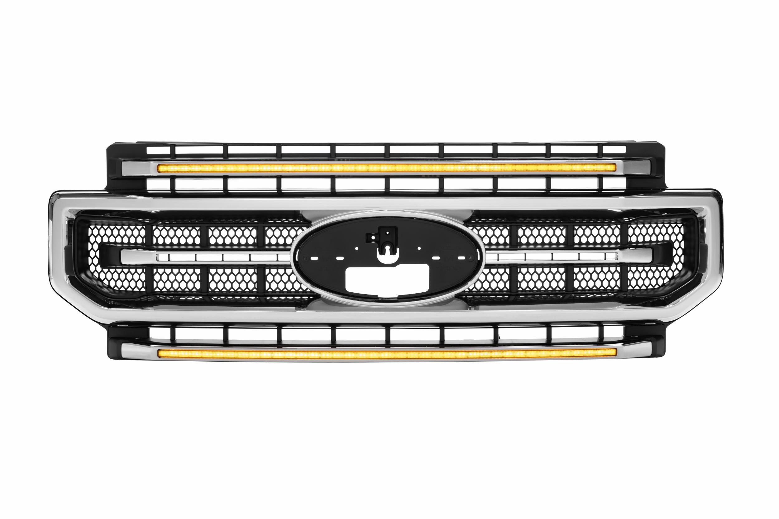 Can you see me now? With full LED headlights, tail tights, and off-road lights, You have no problem seeing at night, but that’s not what this is all about. The XBG grille from Morimoto pairs high visibility with an OEM+ style and easy installation for a perfect way to finish off the front-end of your custom Super Duty.Daytime Running Lights: Using the same automotive grade optics and Osram LEDs that come standard in Morimotos XB LED headlights, the integrated DRL Bars are insanely bright, easily visible even from afar in broad daylight! In fact, the daytime mode is so bright that the light bars will auto-dim in parking light, low beam, or high beam mode out of necessity in order to reduce glare at dusk or in the dark. These are available with either a white or amber daytime running light.No Comparison: Put side-by-side during the day with other existing options in the aftermarket or anything you could DIY at home, and the quality, consistency, and intensity out of the Morimoto optics would make the everything else look like a joke. If you are serious about the looks and performance of the parts you put on your truck, the XBG is the new no brainer.Customize It: The XBG grilles are highly customizable. Whether your truck is stacked with chrome or color-coordinated to the max, there is a XBG spec perfect for you. The front trim pieces can be removed with ease, painted (or wrapped), and then reassembled. Both the Chrome and Gloss Black versions are ready to install right out of the box, but if you prefer to color match, we recommend going with the black base grille. Either way, the finished look is sure to impress!Compatible: With all versions of the Ford Super Duty trucks from 2020-2022, the XBG LED DRL grilles are extremely easy to install. They use all the stock mounting points, hardware, and shouldn’t take more than 30-60 minutes to install. While the color/intensity is a perfect match for the Morimoto XB headlights, they’ll also look great alongside a set of OEM LED or any other aftermarket headlights too.Plug n Play: The XBG DRL bars have two intensities that automatically illuminate day and night based off the signals from the original headlight wiring that they’re designed to connect with. The default setup intercepts the headlight signals from Super Duties with the standard halogen headlights. An adapter harness is also included for trucks that came with the original equipment LED headlights. No modifications required.